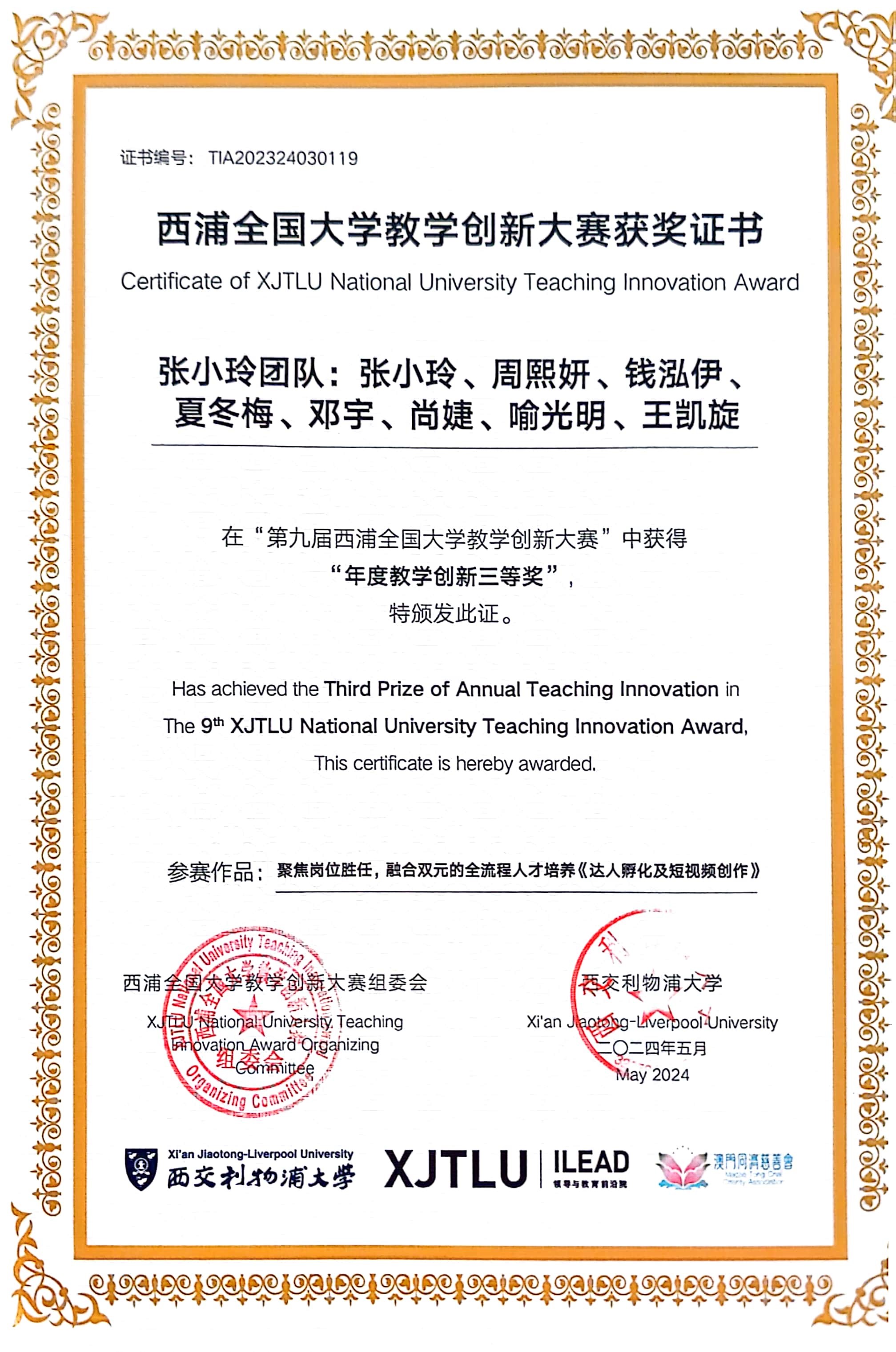 我院张小玲教授团队,获得获得本次创新年会教学创新成果荣获三等奖,为学校获得了荣誉。本次奖项的获得,不仅是对张教授教学创新实践的认可,也是对新媒体电商学院教学理念和实践的肯定。作为代表前往现场领奖,张小玲教授表示:“获得这个奖项对我来说既是荣誉也是责任,我将继续致力于教学创新,为学生提供更高质量的教育体验。”