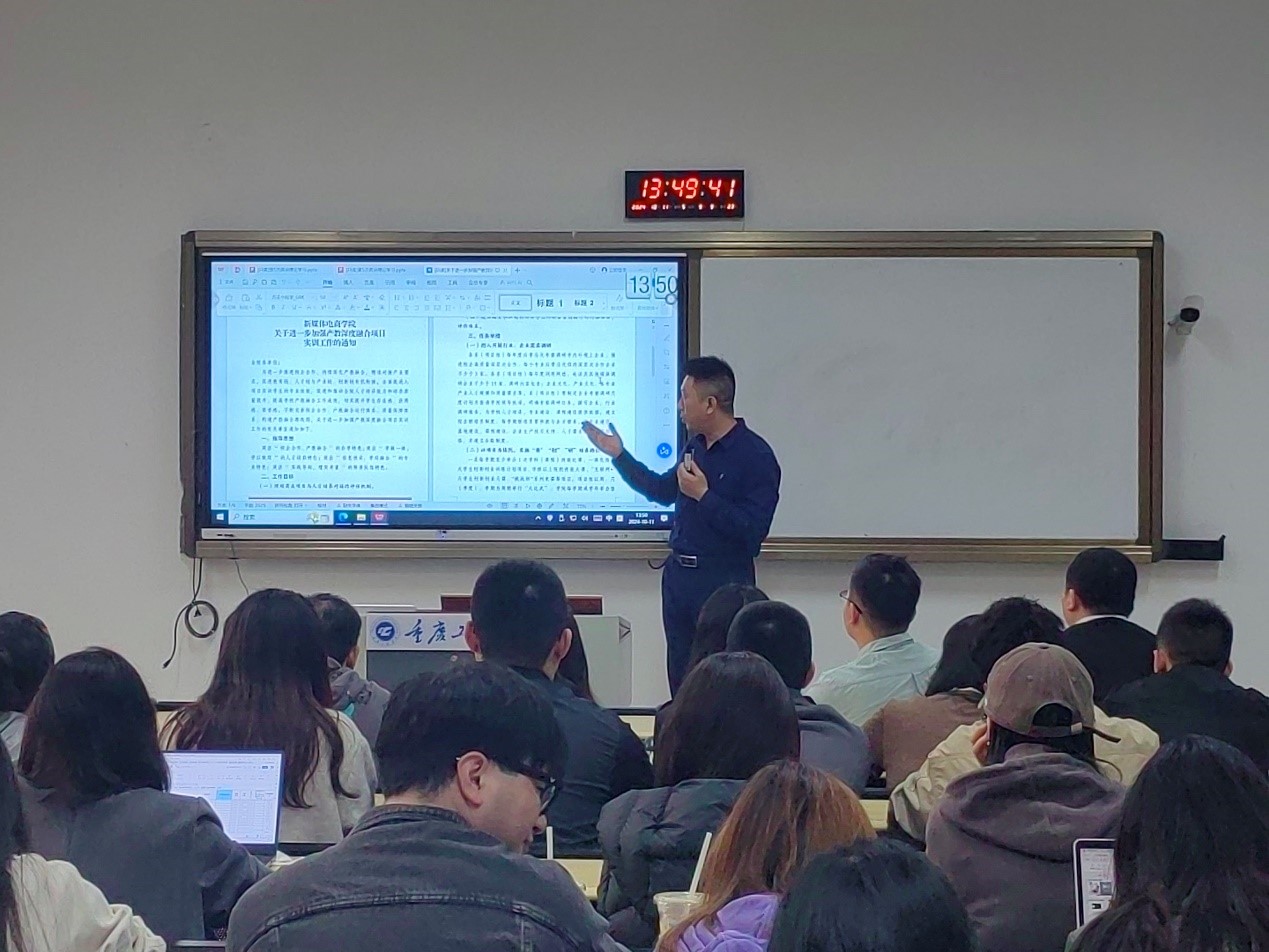 会上,党总支书记邹均解读了学院产教融合工作三个方面的制度。他着重对商业项目管理引进办法的标准、内容、要求进行了解读。同时对进一步加强产教深度融合项目实训工作提出了工作要求。三个制度的解读,对促进和推动全院人才培养能力和培养质量提升,提高学校产教融合工作成效,切实提升学生存在感、获得感、荣誉感,不断完善校企合作、产教融合运行体系、质量保障体系,构建产教融合路线图提供了操作规程。