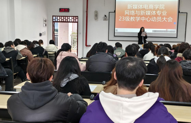2025年2月24日下午2点,新媒体电商学院网络与新媒体专业23级教学中心动员大会在6201教室隆重举行。本次大会以“凝聚力量,共启新程”为主题,旨在为新媒体创作中心、短剧创作中心及融媒体创作中心的全体学生明确未来发展方向,激发实践热情。三大中心的负责老师——张小玲教授,周熙妍老师,邓宇老师出席并发表讲话,现场气氛热烈,学生反响积极。