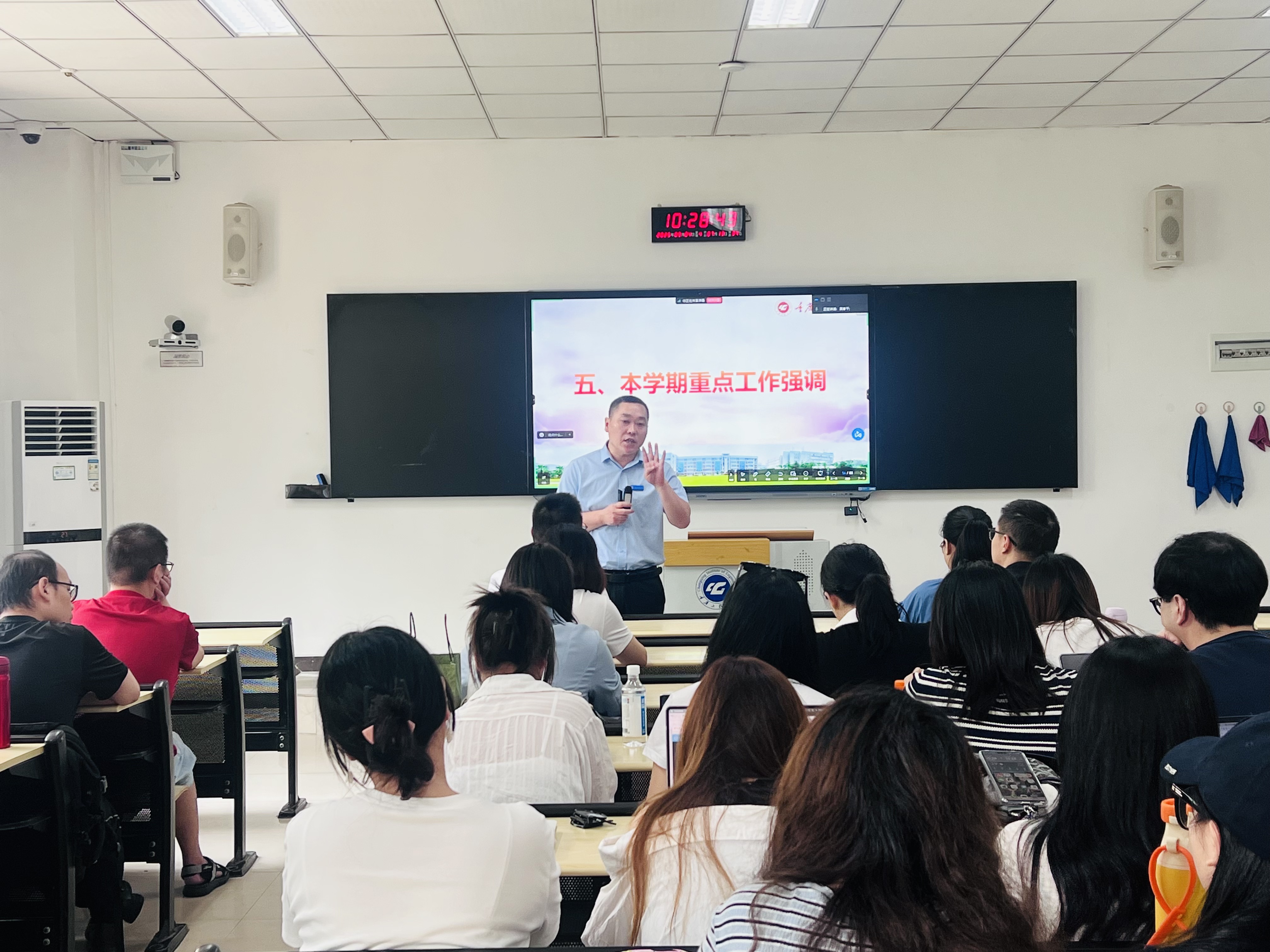 在教学工作部署环节,吴诗奎系统梳理了新学期教学安排,重点阐释了日常教学巡查与评价机制,强调通过规范化管理保障教学质量。宋超围绕产教融合提出深化路径,指出将加强校企协同育人,推动课程内容与行业需求精准对接,构建实践教学新生态,全面提升应用型人才培养实效。