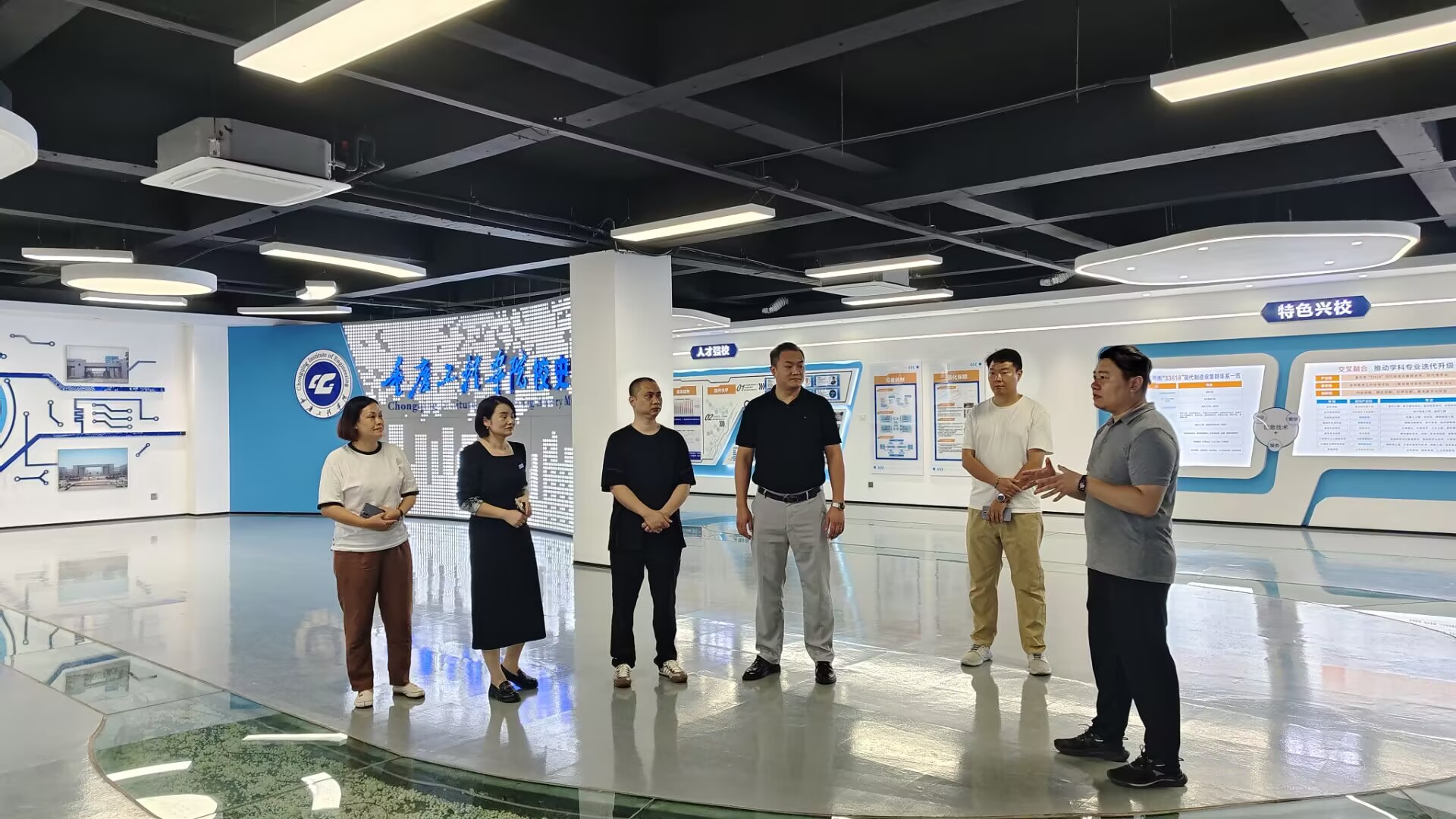 剑涛物联代表团首先参观了学校校史馆,系统了解学校的办学特色与发展历程。随后,代表团走进学院项目直播间,实地考察学生直播运营等实践教学场景,近距离观察“课堂即职场”的实战育人模式,对学院“产教融合、工学交替”的培养体系给予积极评价。参观结束后,双方移步会议室展开专题座谈,就企业需求与学院资源匹配、实践项目落地等具体议题交换意见。