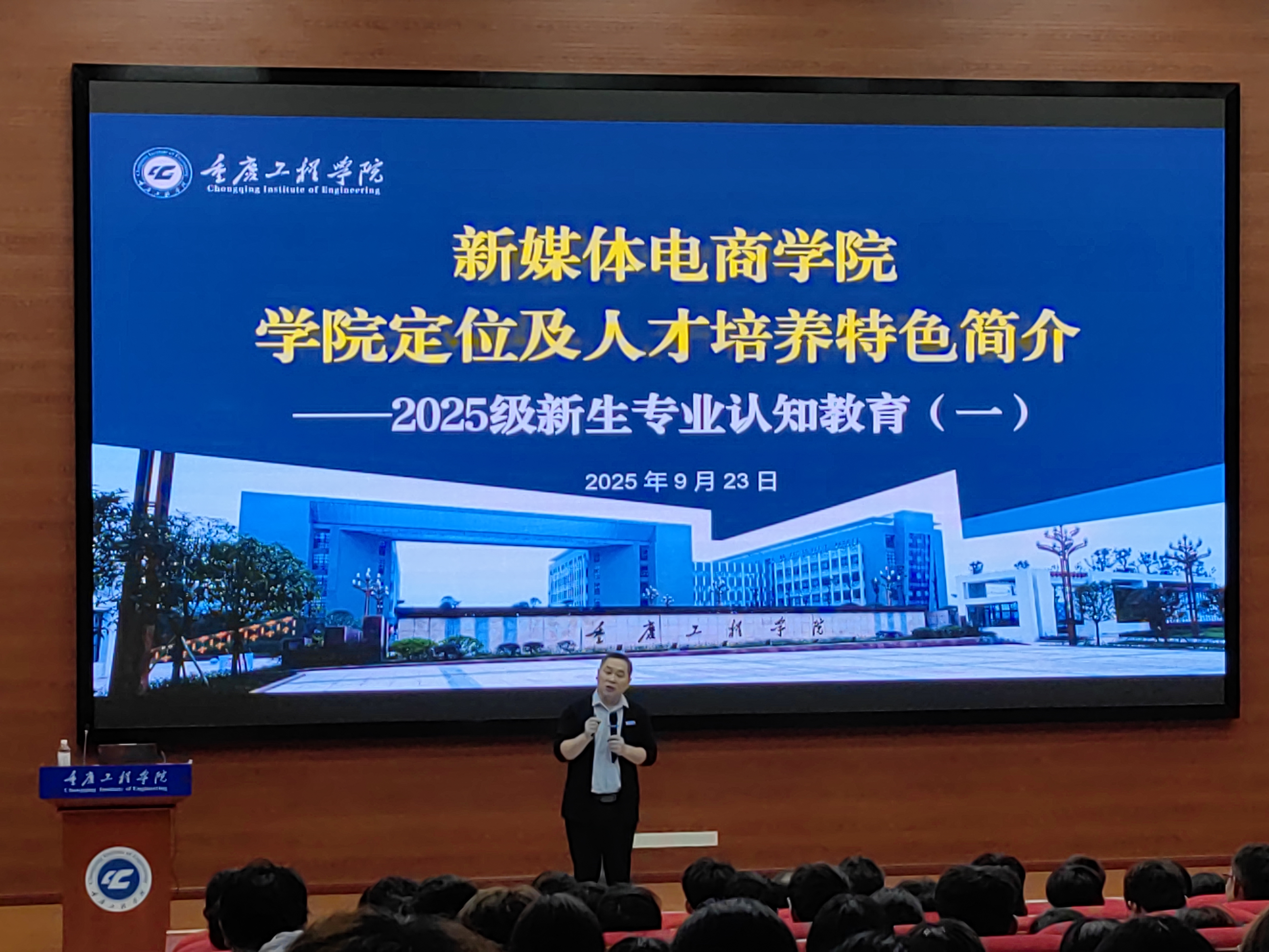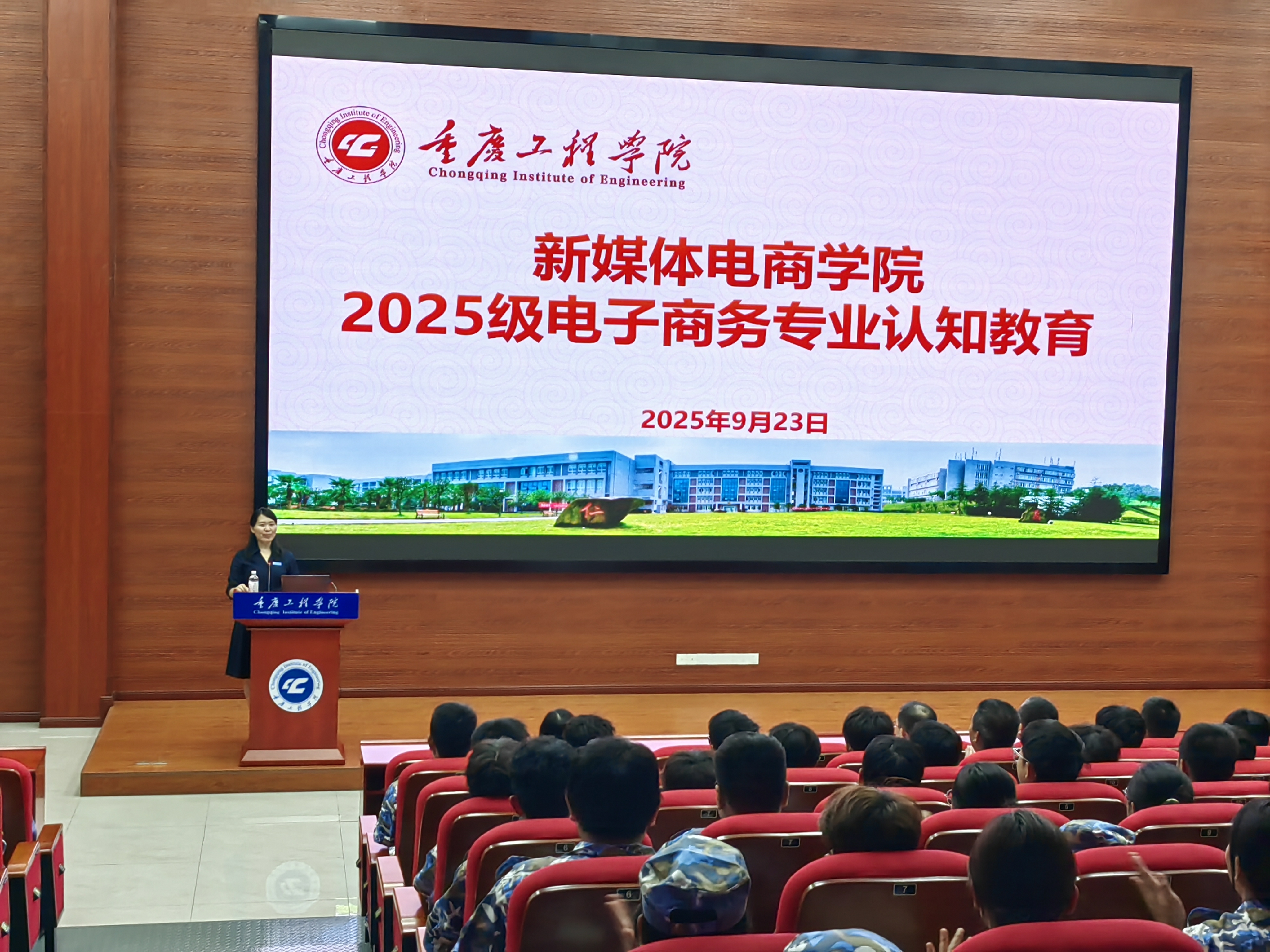 为帮助2025级电子商务专业新生快速了解专业定位、培养体系与发展方向,明确学习目标与职业规划,新媒体电商学院电子商务专业于9月23日在双桥三教报告厅3605组织开展2025级电子商务专业认知教育活动。本次活动由电子商务系曹红梅主任主持,新媒体电商学院副院长严伟、双桥教学工作办公室主任兼院长助理吴诗奎、院长助理宋超、教务科科长何荣双、就业科科长杨睿、电子商务系副主任段利均及孙德莉等领导出席,2025级电子商务专业全体学生全程参与。