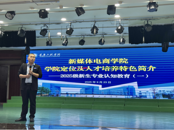 9月23日下午,新媒体电商学院于重庆工程学院双桥校区学术报告厅开展网络与新媒体专业2025级新生专业认知教育。学院副院长严伟、院长助理吴诗奎、办公室主任吴孝平、学生科科长石超伟、教务科科长何荣双、就业科科长杨睿、新媒体系副主任周熙妍、赵晟西出席会议。会议由新媒体系主任邓宇主持。