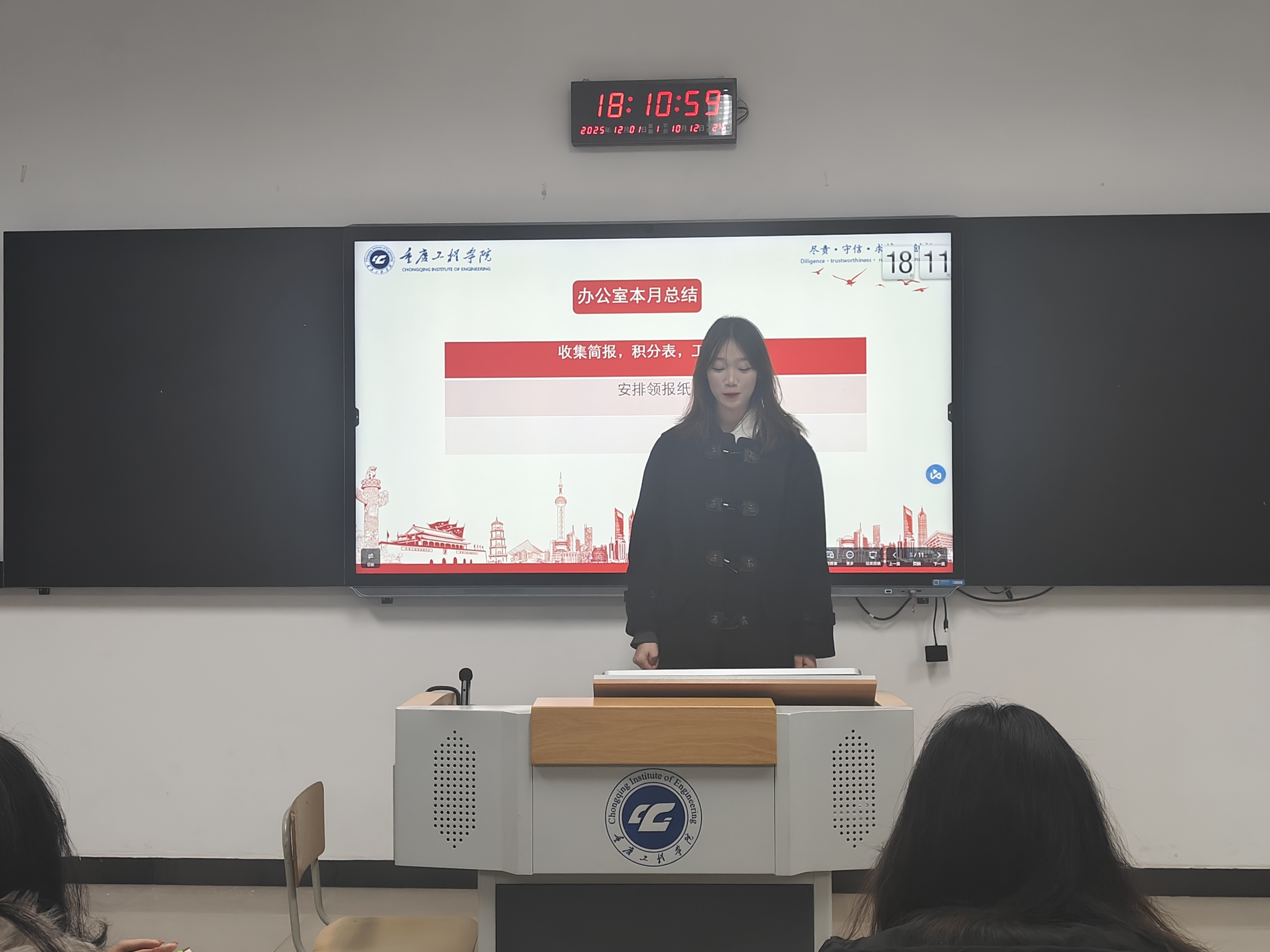 本网讯(图/文:彭星)为总结年度工作成效,系统部署下一阶段重点任务,新媒体电商学院党员实践教育中心于2025年12月1日晚在南泉校区S6120组织召开12月工作例会。会议由中心负责人温明霞主持,各部门成员共同参会,通过回顾近期工作进展,协商安排进一步的中心工作。