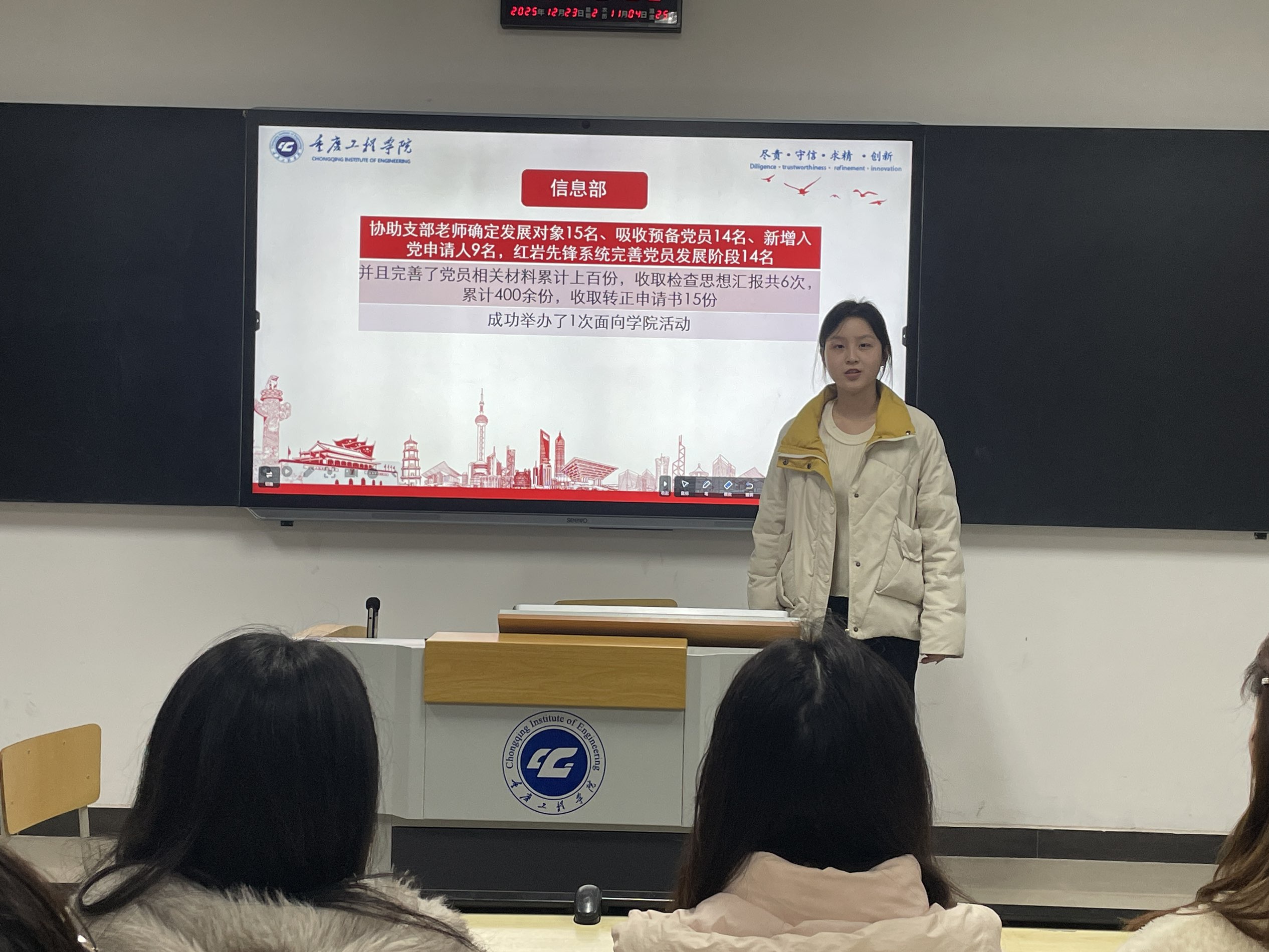 本网讯(图/文:陈乙琳)12月23日晚,新媒体电商学院学生党员实践教育中心在第六教学楼119教室开展了12月工作例会及期末总结大会。会议旨在总结本月工作成效与学期整体建设成果,部署下学期工作任务,让全体学生助理心志归一,力聚一处,为中心的前进步伐不断注入蓬勃动力。