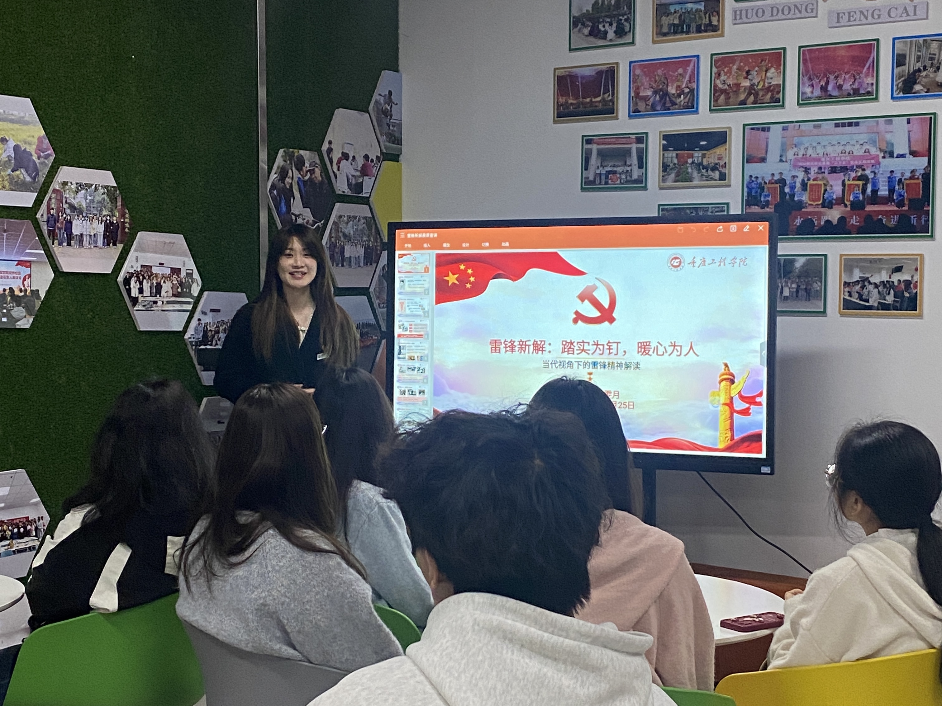 本网讯(图/文 李薇)为传承弘扬新时代雷锋精神,以红色教育筑牢思想根基,2026年3月25日,新媒体电商学院党员实践教育中心成功开展“雷锋新解:踏实为钉,暖心为人”主题宣讲活动。本次宣讲由罗雯月主讲,引领全院青年学子以全新视角解读雷锋精神,凝聚青春担当正能量。